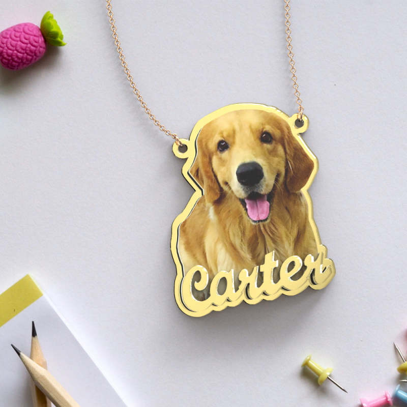 Collar de oro grabado personalizado que le regaló un exquisito collar de mascota personalizado. Todo el collar es dorado, lo que le da un aire noble, y puedes personalizarlo con una foto de tu mascota. Haz un collar con la cara de tu mascota y personaliza el texto debajo del collar. Puedes grabar el nombre de tu mascota y dárselo a tu pareja. Confía en mí, le encantará este regalo.