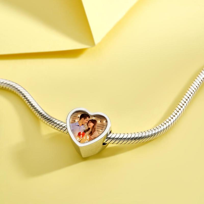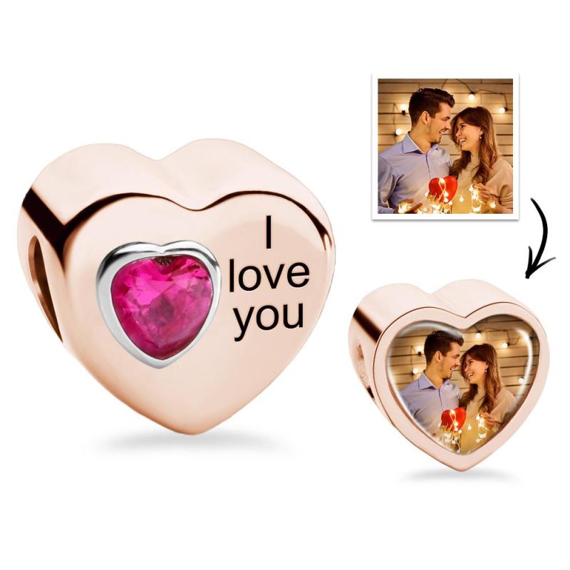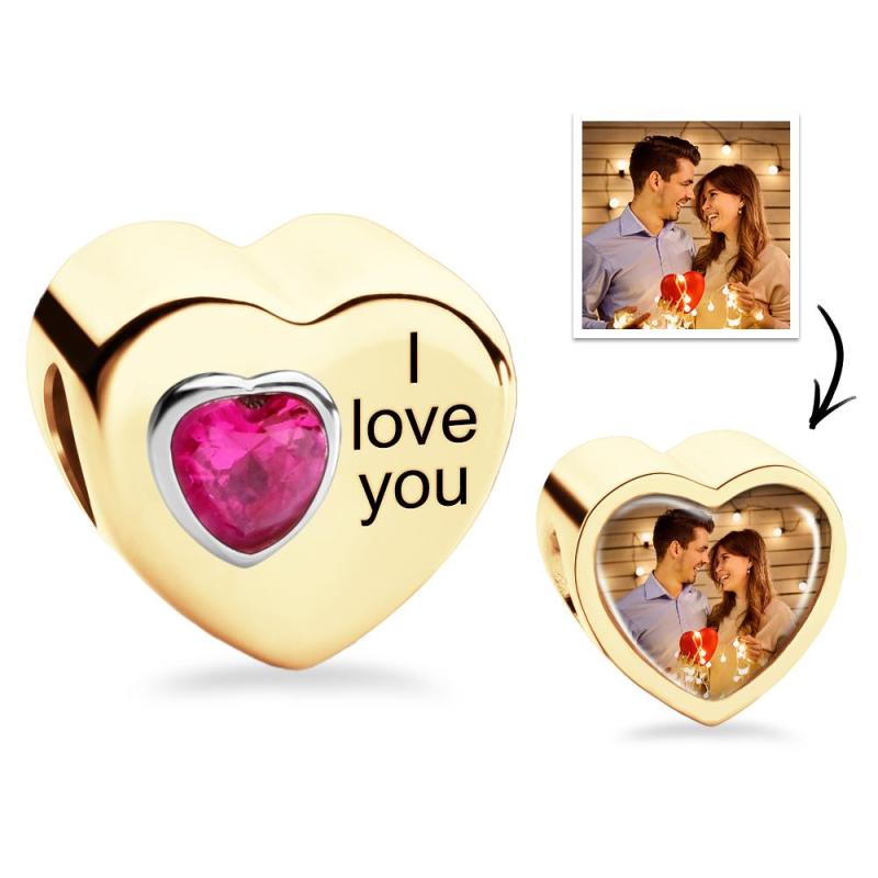 Encanto De Corazón Con Foto Personalizada, Joyería Con Colgante De Piedra Natal Grabada Personalizada