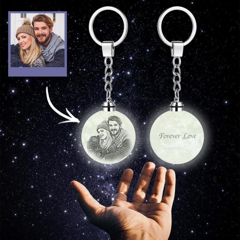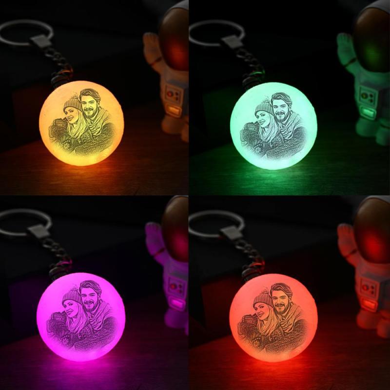 Regalos Coloridos Del Día De Aniversario Del Llavero Impreso 3d De La Lámpara De La Luna Del Llavero De Encargo De La Foto