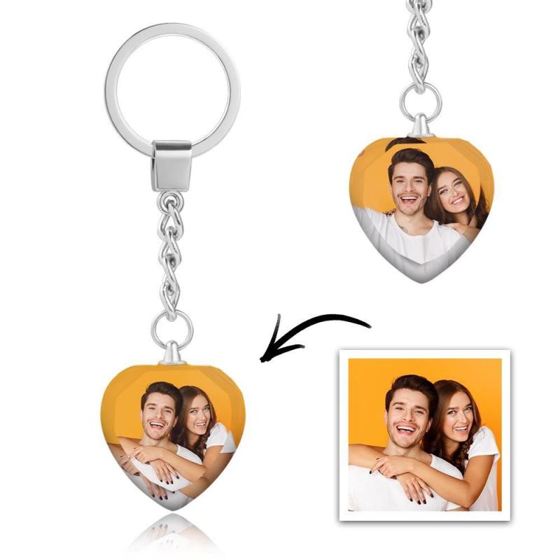 Llavero de Foto Personalizado Llavero de Cristal Regalos de Pareja Dos Imágenes en Forma de Corazón