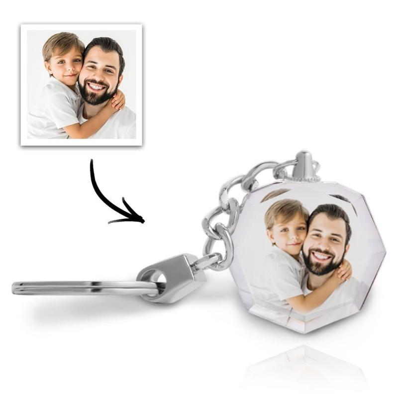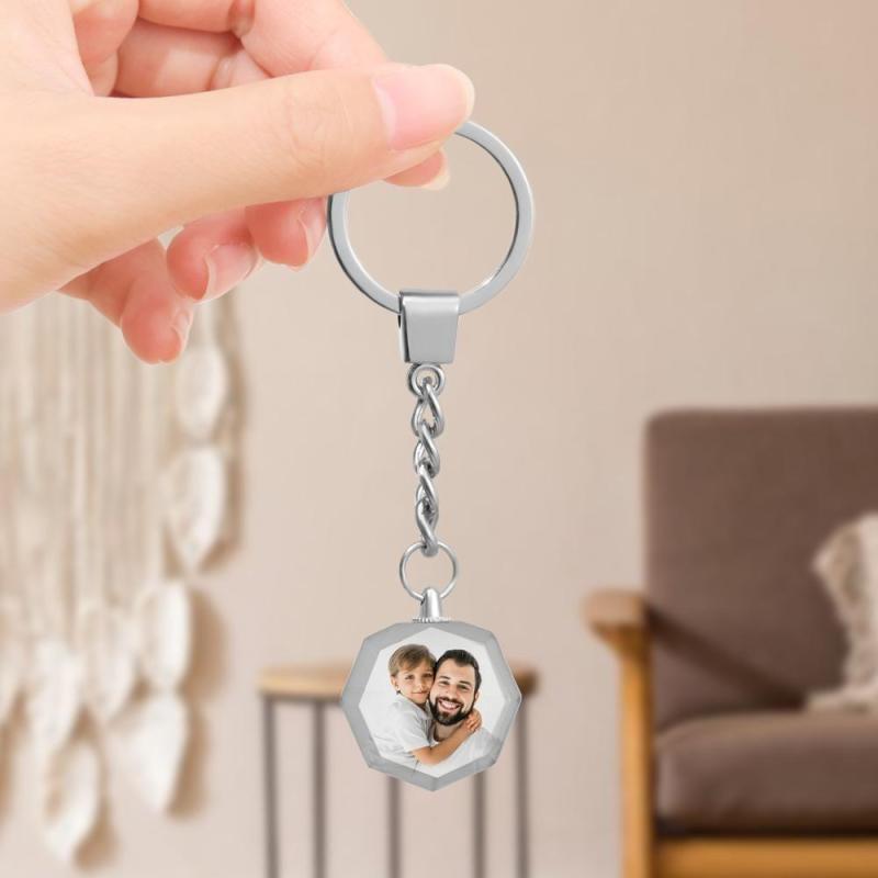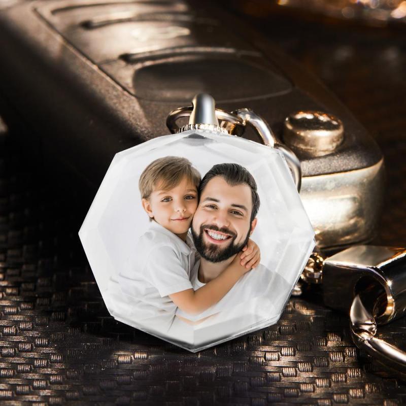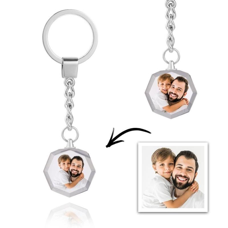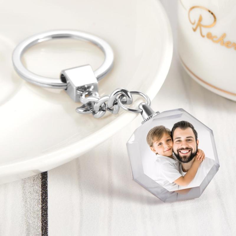 Llavero Personalizado con Foto, Llavero de Cristal, Regalos para Padre con Dos Imágenes Octágono