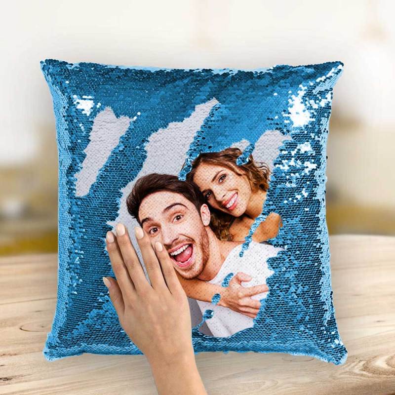 Personalizada Foto Almohada de Lentejuelas Mágicas Lago Azul Brillante 15.75" * 15.75" Regalo único
