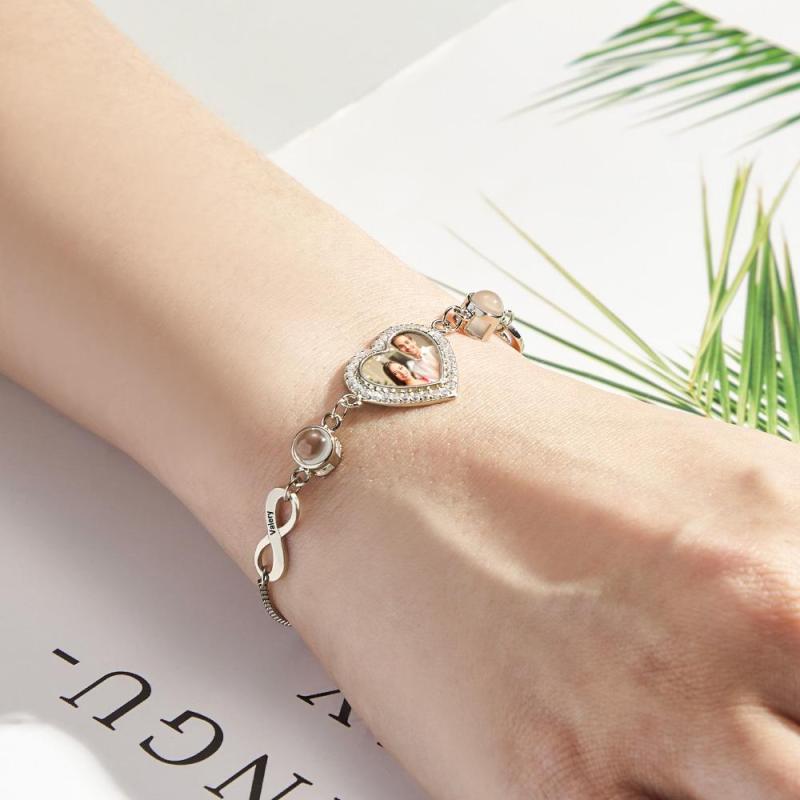 Pulsera De Proyección De Fotos Personalizada Con Texto Love Infinite Bracelet Jewelry Gift Para Ella
