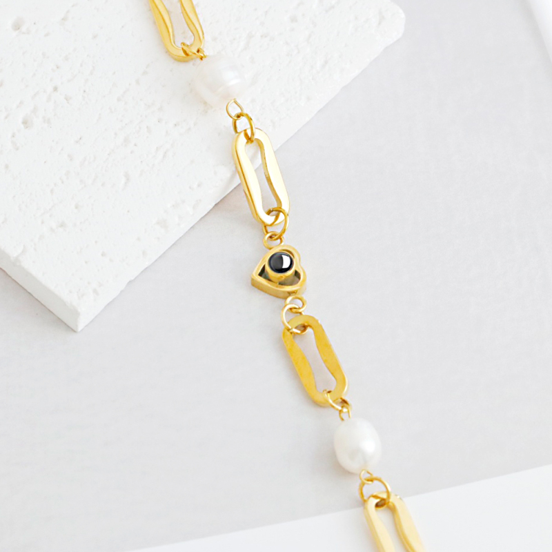 Pulsera De Corazón Con Círculo De Proyección De Fotos Personalizada, Acero Inoxidable Chapado En Oro De 18 Quilates, Eslabón Cubano, Perla Barroca De Agua Dulce, Pulsera Impermeable, Regalo Para Ella