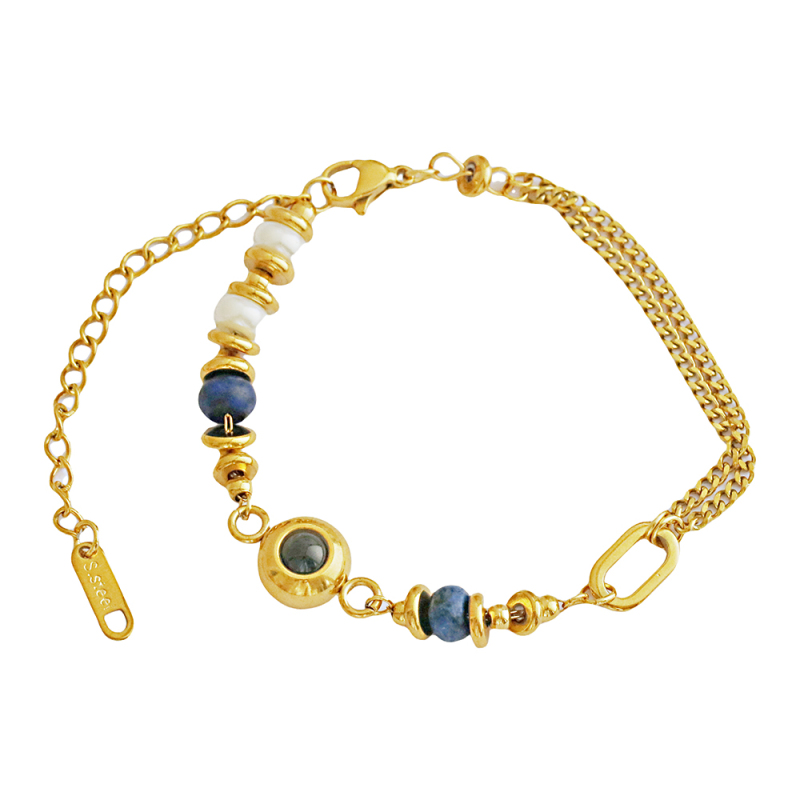 Pulsera De Proyección De Fotos Personalizada Pulsera De Piedra Natural De Lujo Vintage Pulsera Impermeable De Acero Inoxidable Chapada En Oro De 18 Quilates Regalo Para Ella