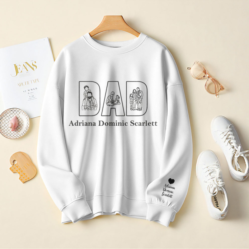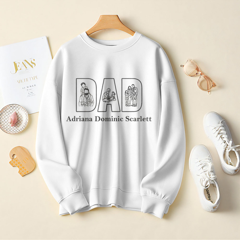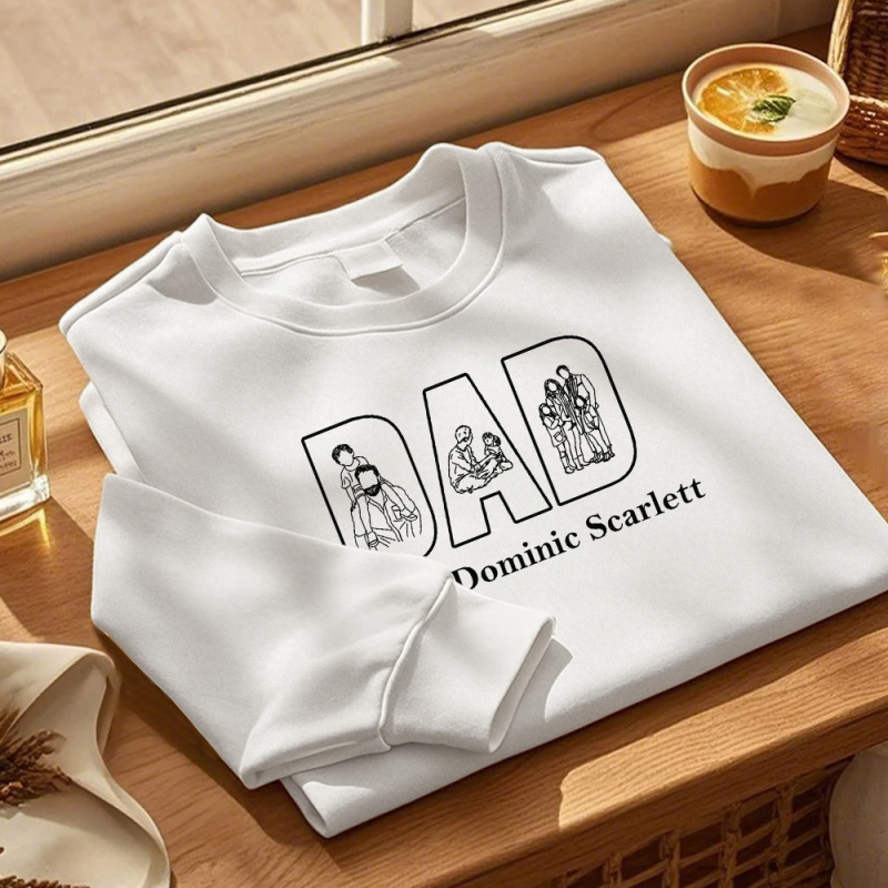 Celebra el Día del Padre con esta exclusiva sudadera con foto personalizada y líneas dibujadas a mano. Confeccionada con poliéster resistente y con impresión por transferencia térmica de alta calidad, es un regalo entrañable para papá. Perfecta para mostrar recuerdos preciados y momentos especiales.