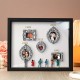 Cada caja de sombras está cuidadosamente organizada con elementos simbólicos que reflejan la historia familiar y personal. Ya sea para regalar o exhibir en tu hogar, esta pieza cuenta una historia poderosa: tu historia.