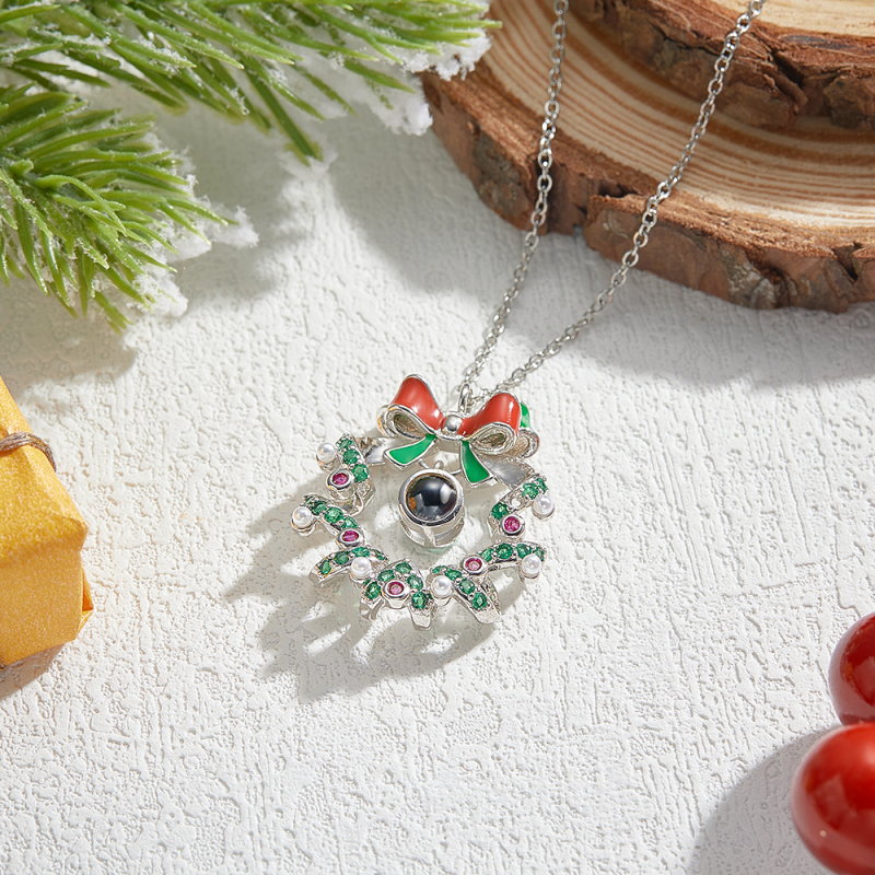Mejore sus regalos navideños con nuestro collar de proyección personalizado, diseñado para capturar la calidez y la alegría de la temporada. Este exquisito collar con forma de corona navideña no solo es una hermosa pieza de joyería, sino también un recuerdo sincero. Cuando proyectas el mensaje o la imagen elegidos, revelas un toque personal que hace que cada regalo sea verdaderamente único. Perfecto para esa persona especial en tu vida, este collar sirve como un recordatorio significativo de amor y celebración durante la temporada festiva. ¡Regala un recuerdo preciado esta Navidad!