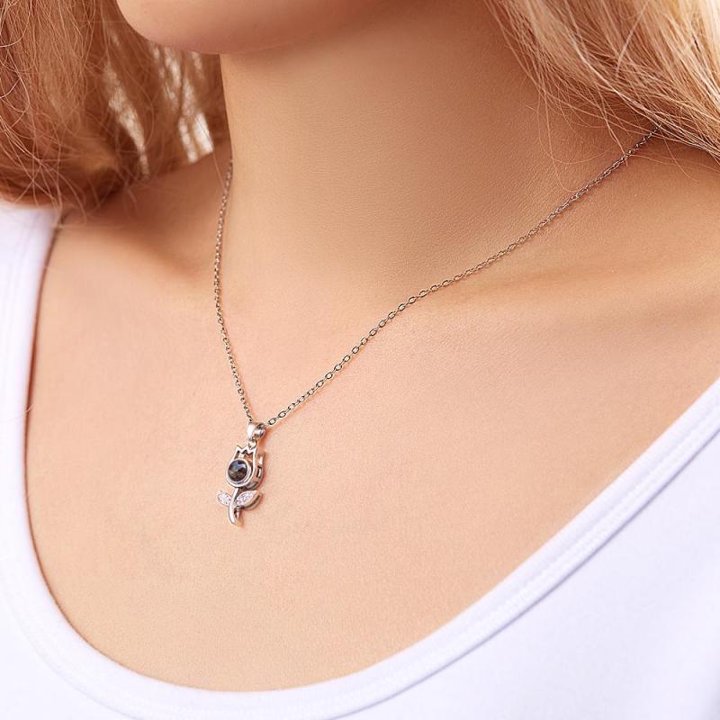 Collar De Proyección Personalizado Foto Personalizada Rose Rhinestone Regalos Conmemorativos