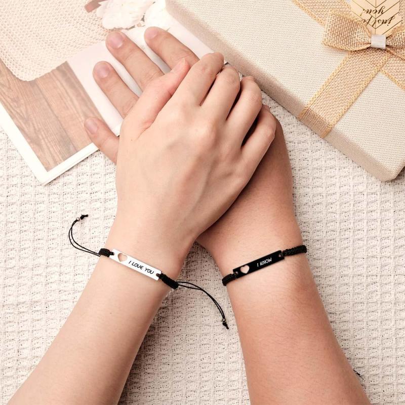 Esta pulsera para parejas vendrá con una lista de diferentes idiomas y también puedes elegir personalizarla con el mensaje que desees. Esto le dará al regalo un significado único para alguien especial. Si desea personalizarlo, elija el estilo 'Grabado personalizado' y personalice su mensaje hoy. Este juego de pulseras es el regalo de compromiso perfecto para parejas, regalo de aniversario, regalo del día de San Valentín, regalo de bodas, un regalo verdaderamente especial y significativo para sus seres queridos.