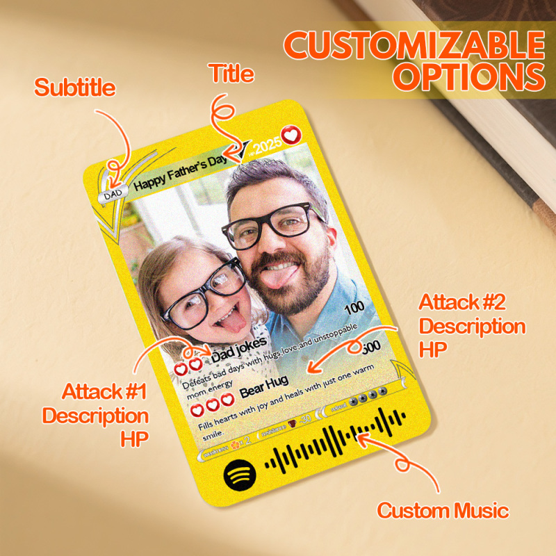 Tarjeta De Pokémon Con Código De Spotify Personalizado, Foto Y Texto Personalizados, Regalos Para El Día Del Padre