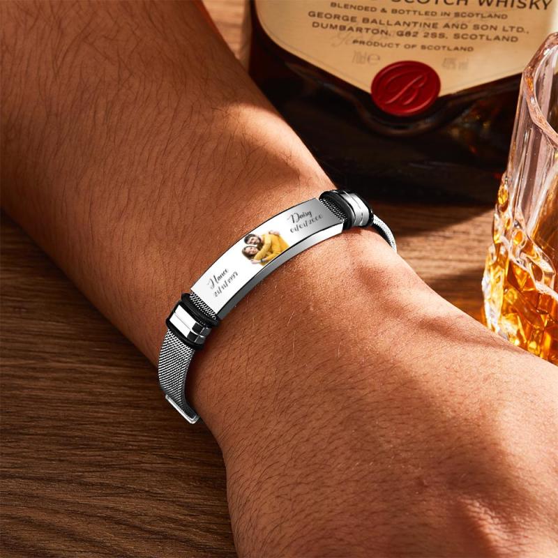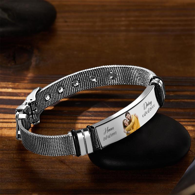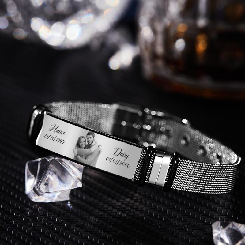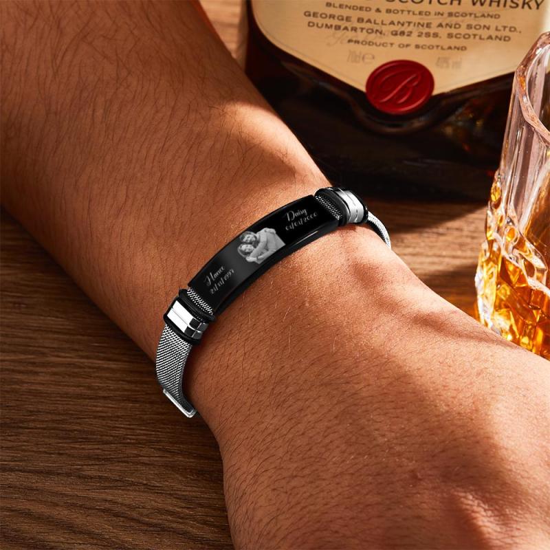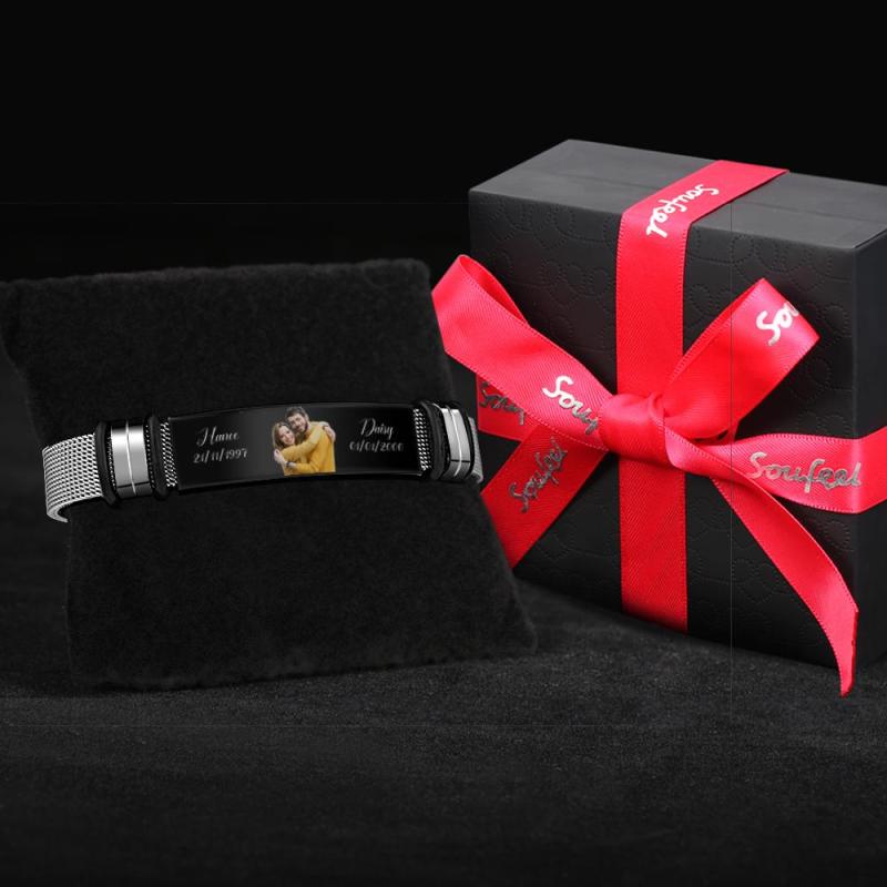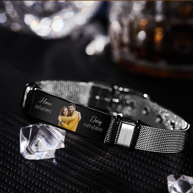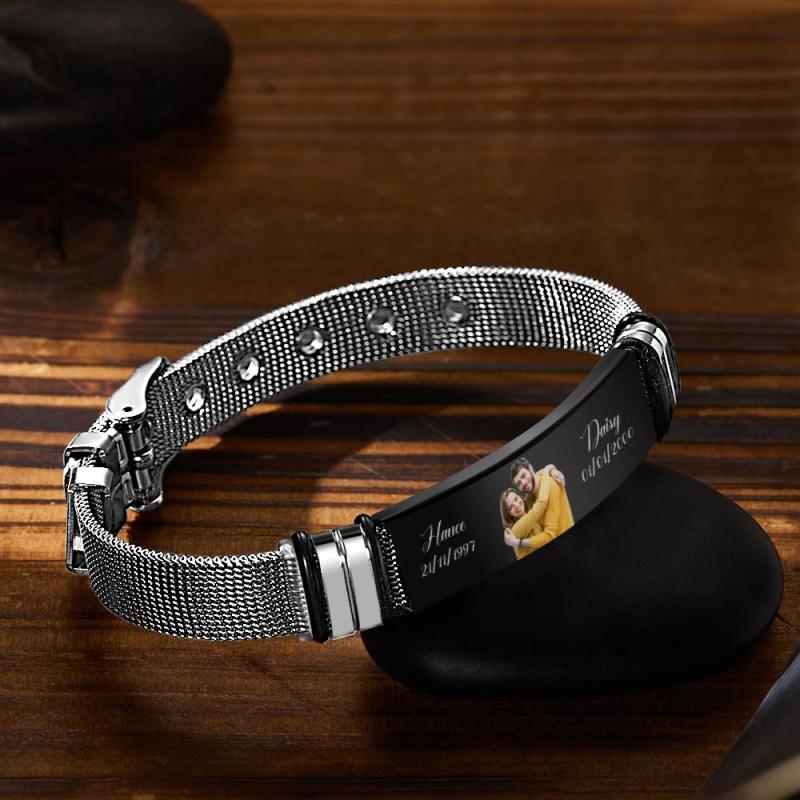 Pulsera Personalizada De Acero Inoxidable Para Hombre Con Dos Filtros Negros Grabados Con Fecha Y Nombre Personalizados, Los Mejores Regalos Para Parejas