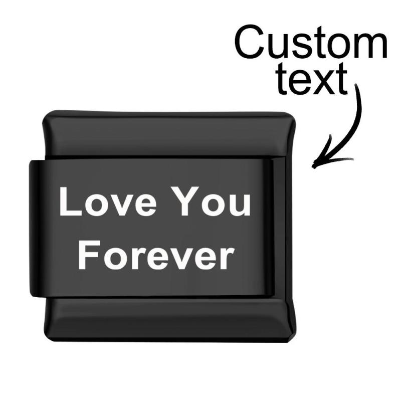 Los dijes italianos son enlaces modulares con resorte que se abren para conectarse entre sí. La altura es de 0,9 cm y el ancho es de 1 cm. Combinados, crean una pulsera personalizada con tu toque personal. Puedes personalizar cualquier texto.
