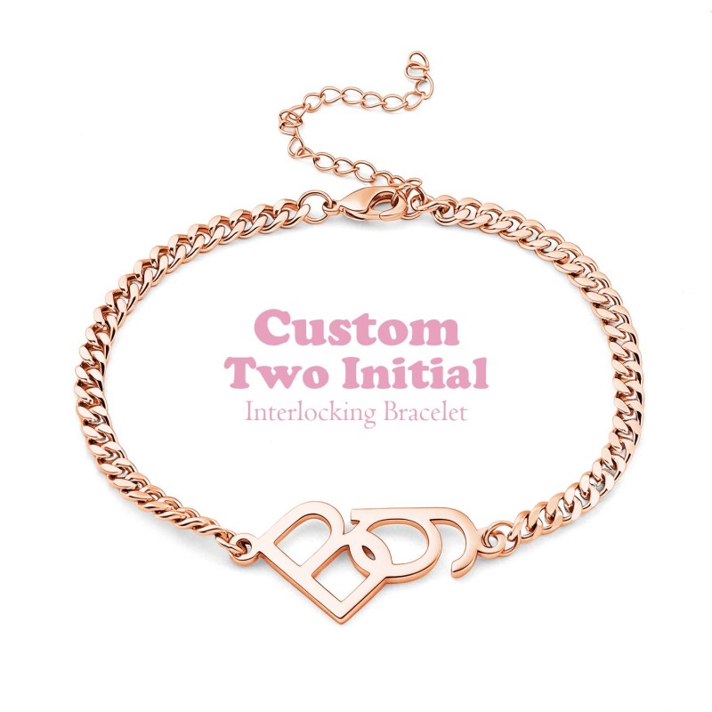 Estas hermosas pulseras muestran dos iniciales entrelazadas en una fina cadena, personalizadas con dijes de letras. Un maravilloso regalo para tus mejores amigas, madres, hijas o cualquier persona querida.