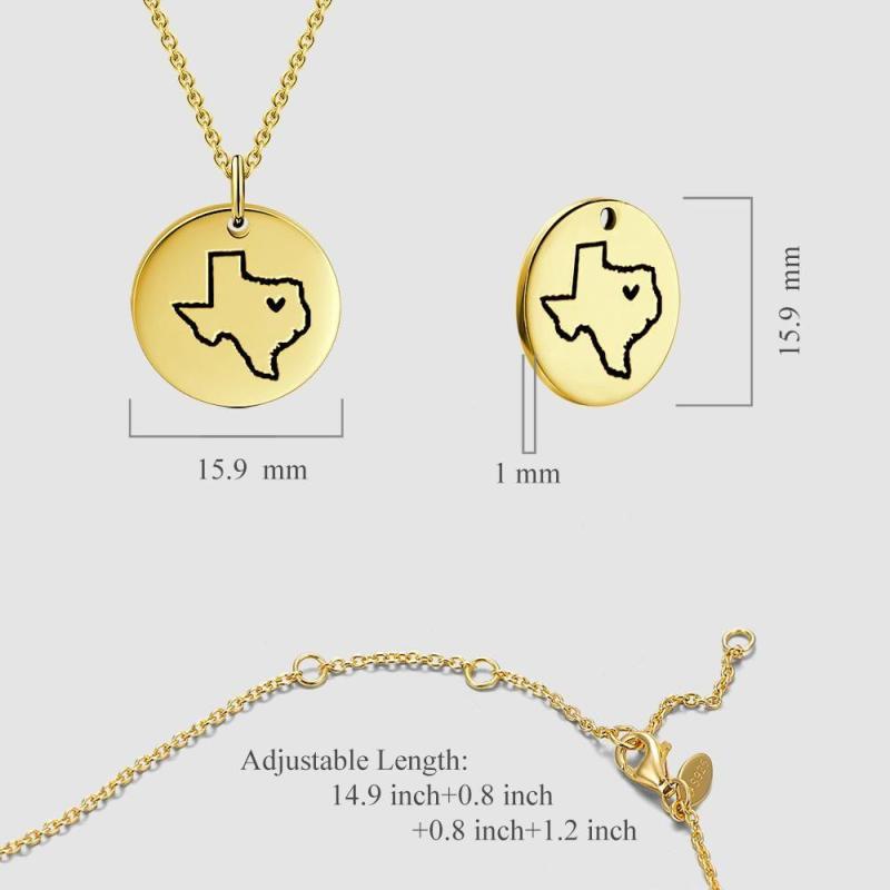 Collar del estado, collar del amor del estado, collar personalizado del estado, collar del estado de la casa. ?Muestre su orgullo del estado de origen con un collar del amor del estado! ?Personalice su estado con un corazón de la ciudad o deje en blanco, le toca a usted! Es ideal para las capas, una pieza minimalista maravillosa, regalo perfecto para su esposa, novia o simplemente para tratar a sí mismo! Grabado y mano montado con cuidado y amor. Soufeel ofrece joyas grabables a precios asequibles que no rompen el banco. Además, estas piezas hacen regalos muy atentos y apreciados para amigos y familiares. Dé a alguien para celebrar un cumplea?os, graduación, té de bebé. Collar Personalizado del Estado de los Estados Unidos Regalo de Afastación Plata - Dorado.