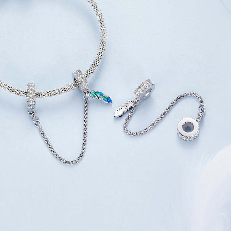 Catenella Con Ciondolo Di Sicurezza Con Piume Delicate In Argento