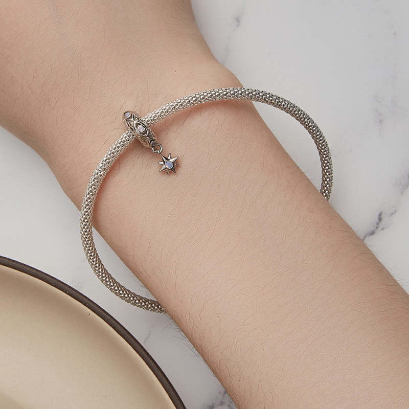 Ciondolo Distanziatore Con Ciondolo A Stella Con Occhio Di Demone, Argento