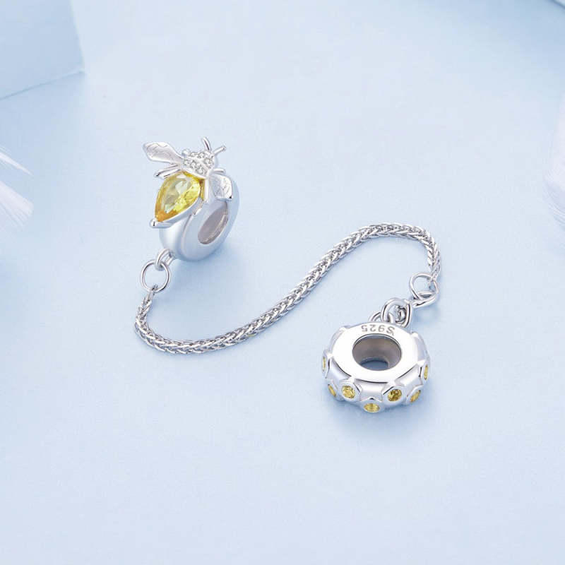 Catena Con Ciondolo Di Sicurezza Con Ape E Diamante In Argento