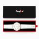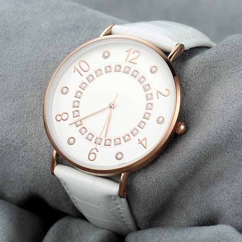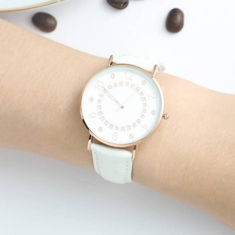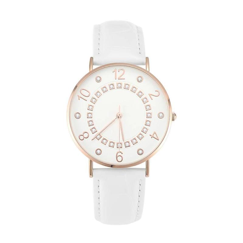 Dial Digital Reloj Cuarzo de Esfera Blanca con Correa de Cuero Blanco - Mujeres