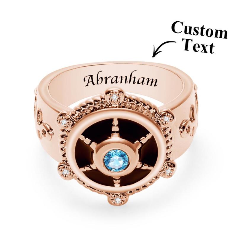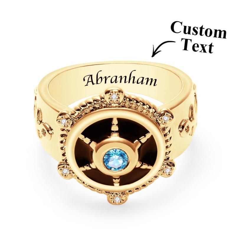 Anillo De Timón De Barco Grabable Con Diamante, Regalo De Anillo Retro Único Para Él