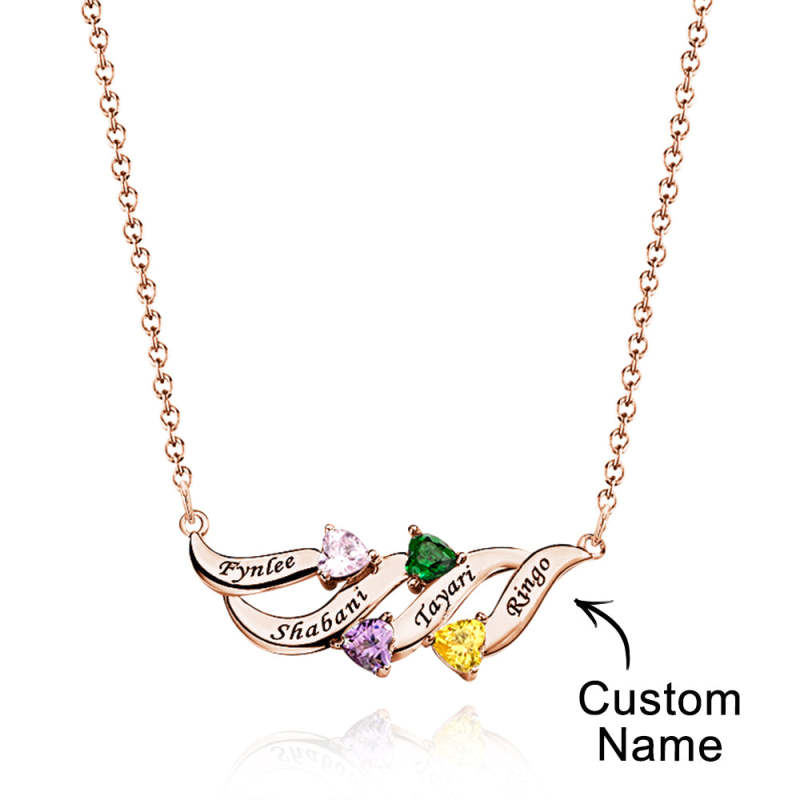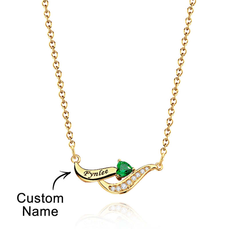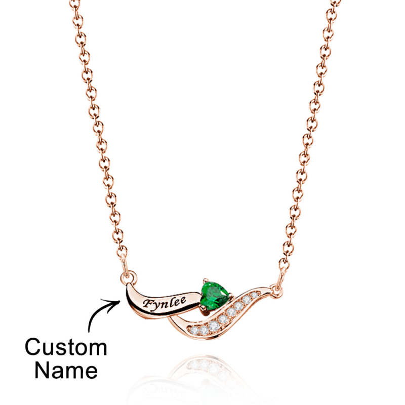 Collar Encantador Grabable Con Piedra De Nacimiento De Corazón Regalos Para Ella