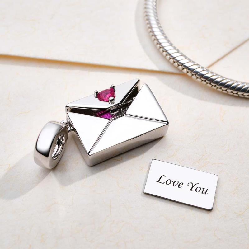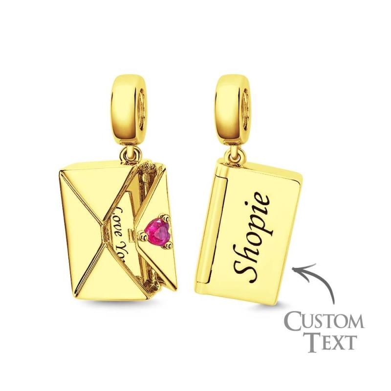 Encanto De Sobre Grabable Que Se Puede Abrir Con Piedra Natal, Colgante De Carta De Amor Creativo, Joyería Para Ella