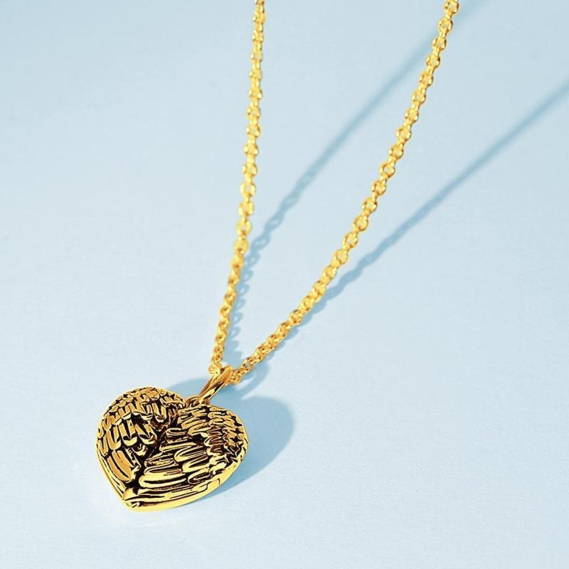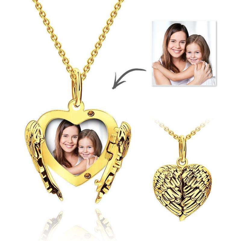 Collar con Medallón con Foto para Grabar, Corazón, Alas de ángel, Regalos para Parejas, Chapado en Oro, Plata Regalos De Navidad
