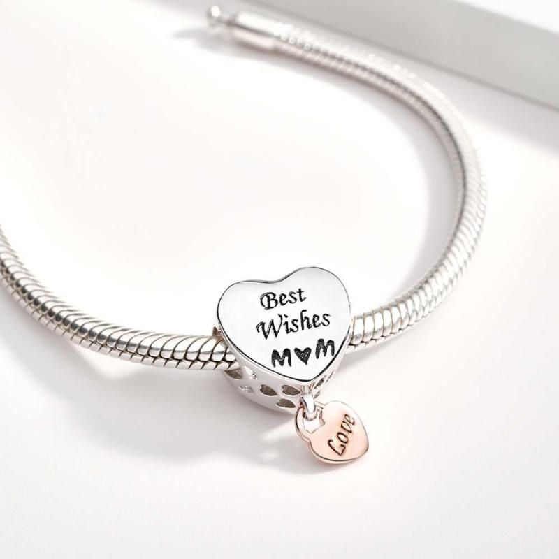 Dijes Grabados Con Forma De Corazón Para Mamá, Abalorios Para Regalos Del Día De La Madre
