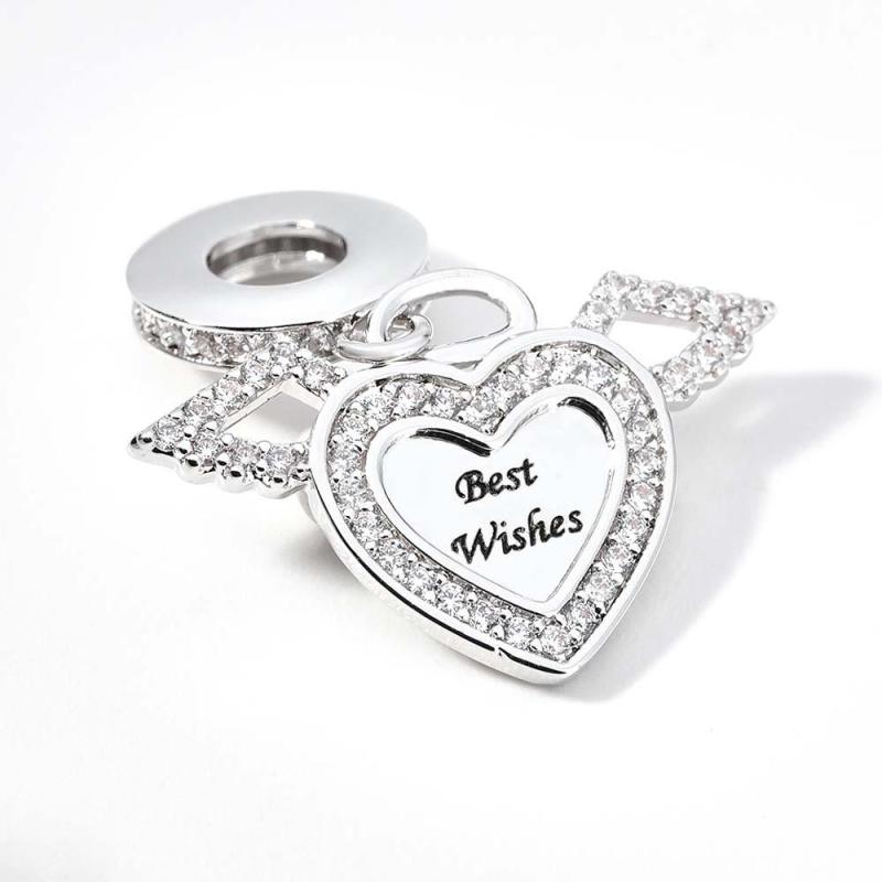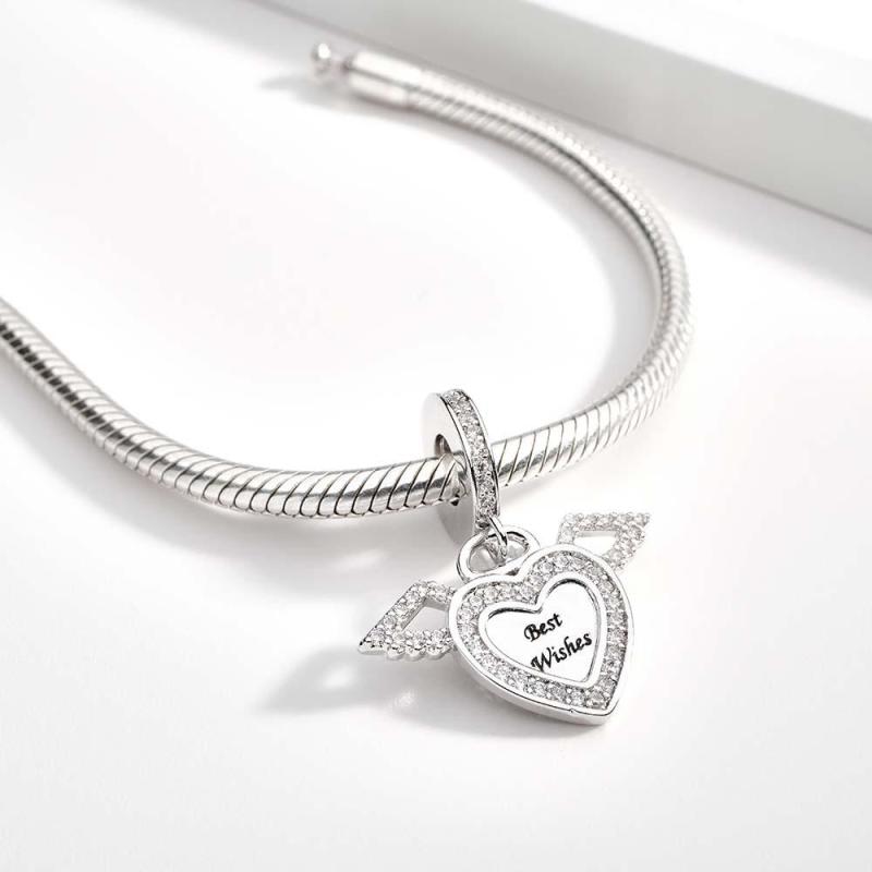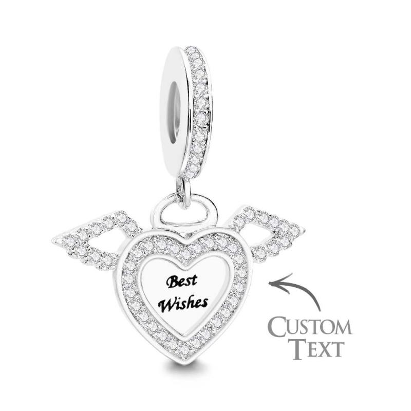 Encanto Grabado En Forma De Corazón, Dijes De Ala, Regalo De Joyería Para Mujeres Y Niñas