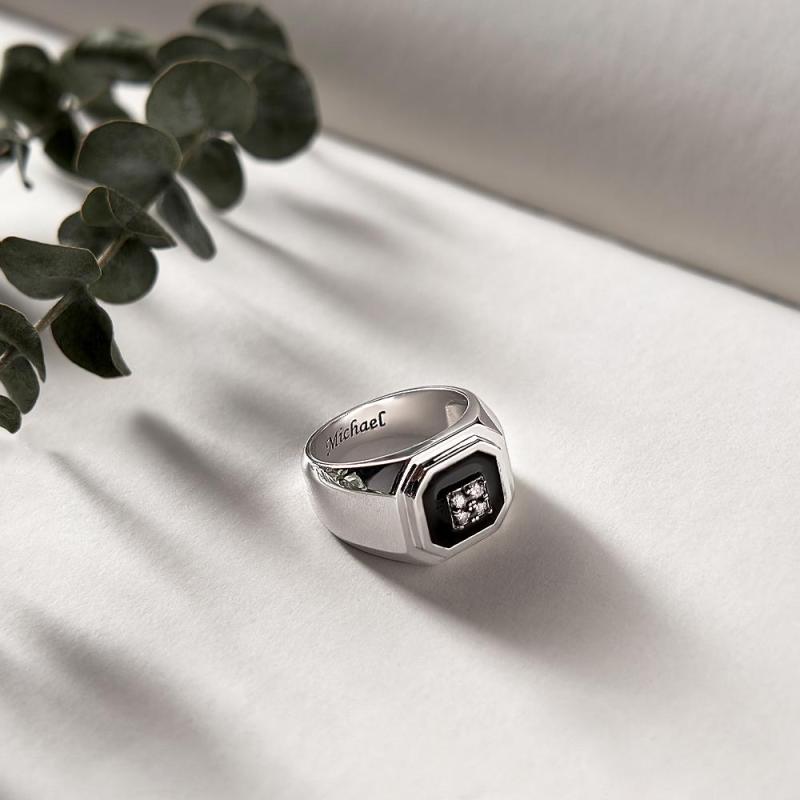 Este exclusivo anillo grabado para hombre no solo es un accesorio elegante sino también una expresión personalizada.