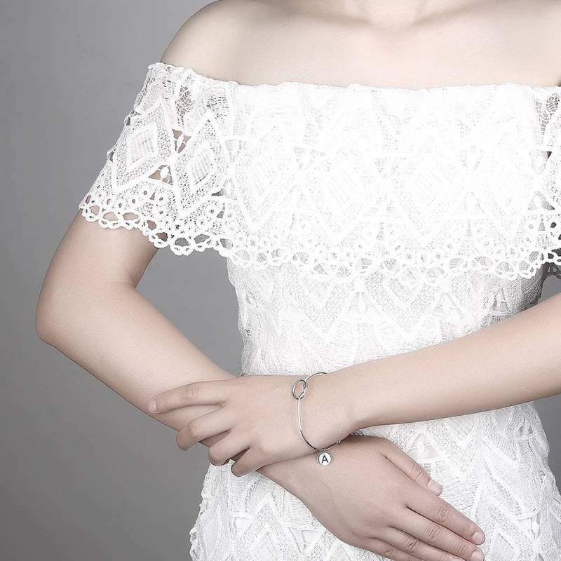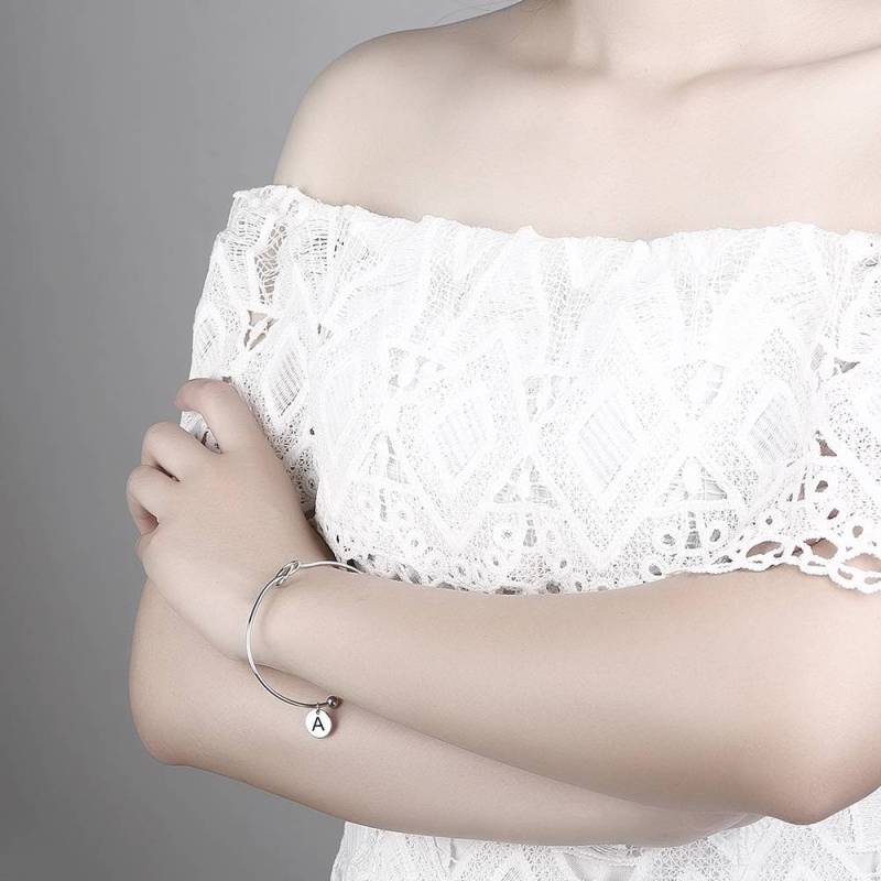 Brazalete de Nombre de Letra Inicial Grabable Chapado en Platino