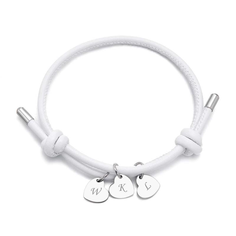 Esta pulsera única es el regalo perfecto para ella. Es agradable al tacto y cómodo de llevar. La pulsera se puede ajustar fácilmente tirando suavemente de los dos nudos. Elija palabras u oraciones con significado especial para imprimir en la pulsera y formar su pulsera exclusiva. Las pulseras grabadas son vanguardistas y una excelente manera de lucir algo personal y único.