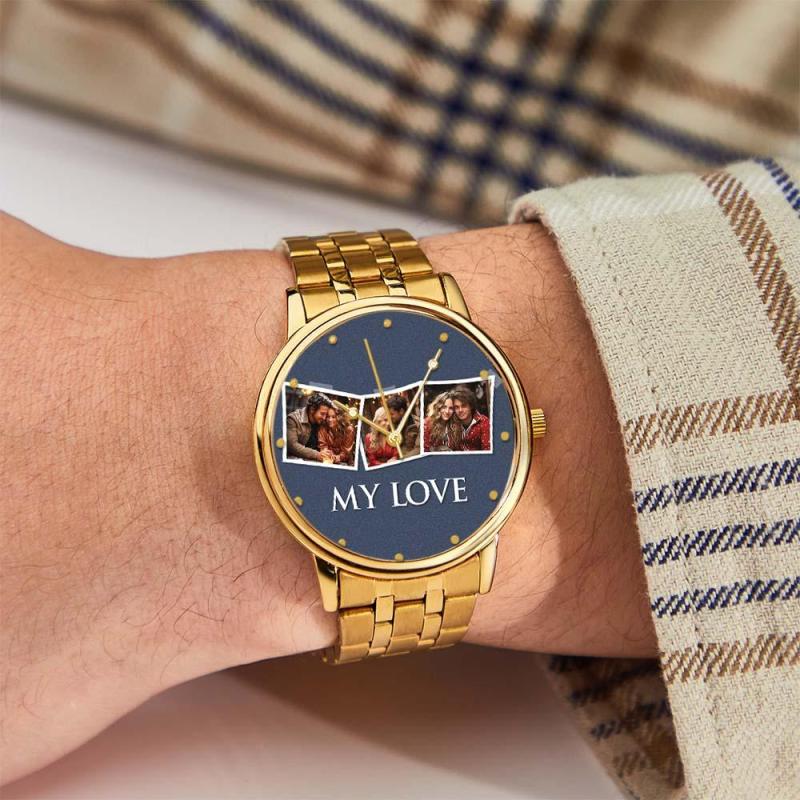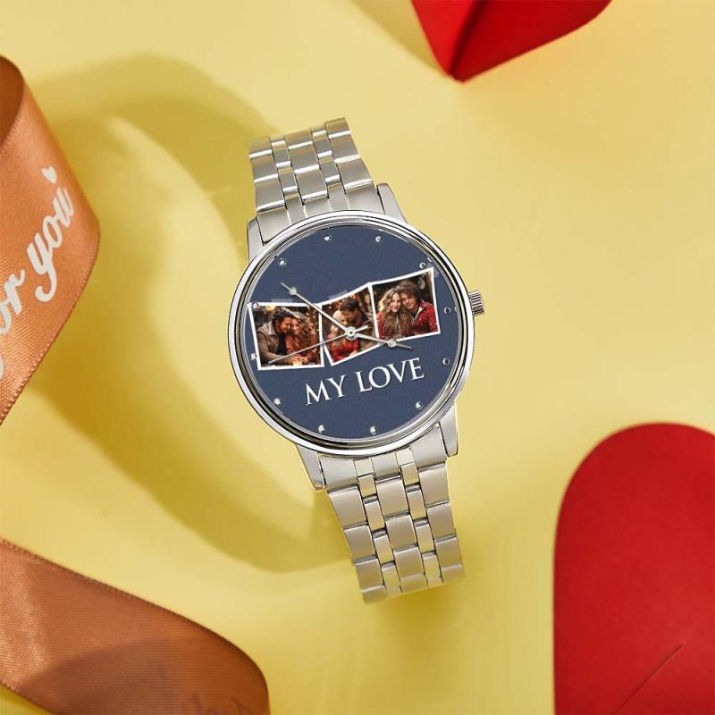 Reloj Con Foto Grabada Personalizada, Regalos De Navidad, Pulsera De Aleación Negra Para Hombre, Reloj Con Foto Para Mi Novio, Regalos I Love You