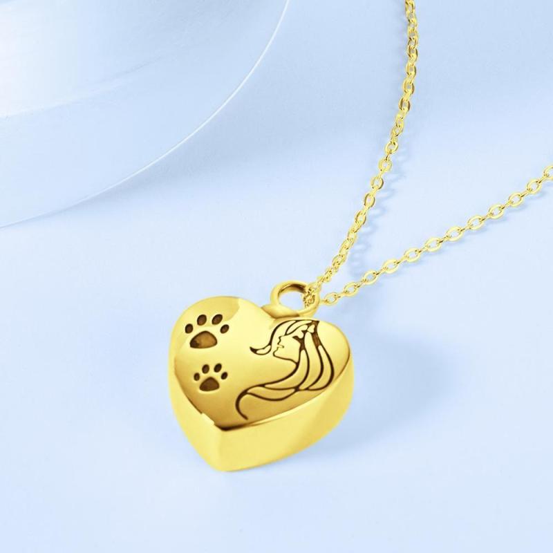 Collar Grabado Collar de Urna Collar de Joyería de Cremación para Cenizas Ama A Tu Mascota Chapado en Oro de 14 K