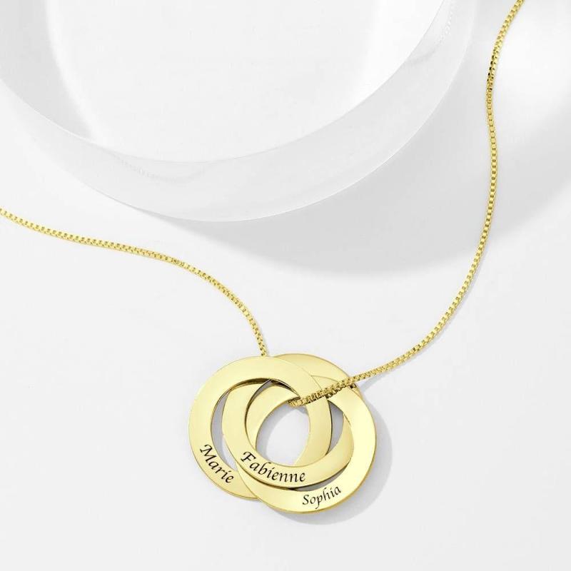 Grabable Colloar con Tres Discos Plata Chapado en 14K Oro