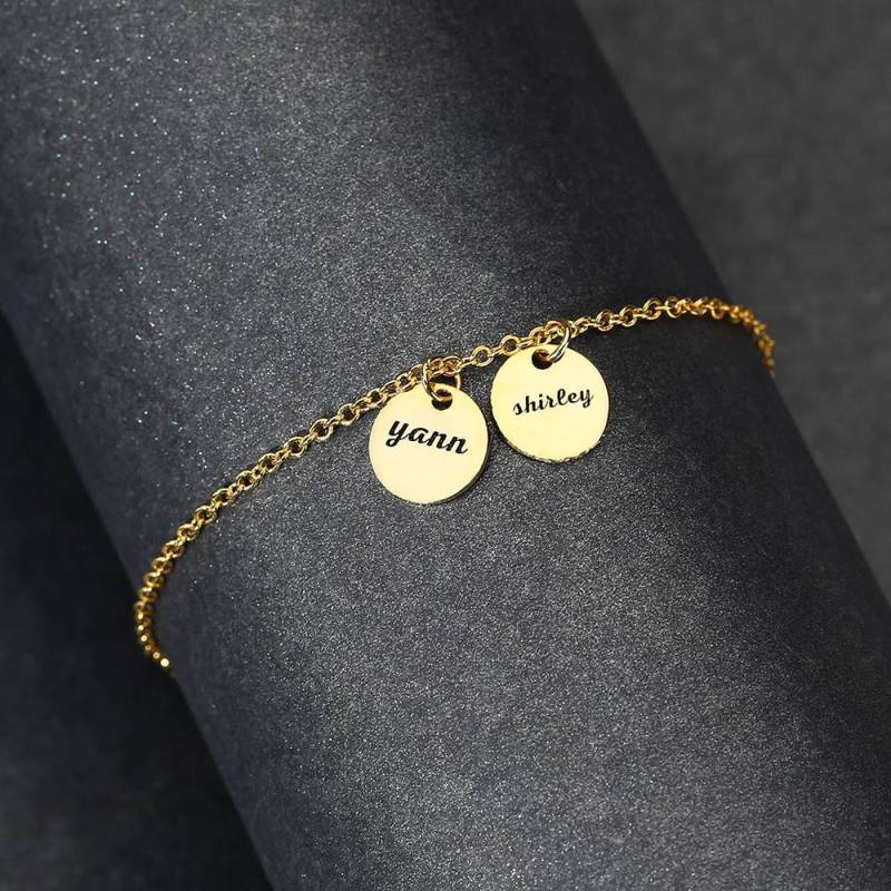 Tobillera de Dos Manedas Grabables Plata Chapado en 14k Oro
