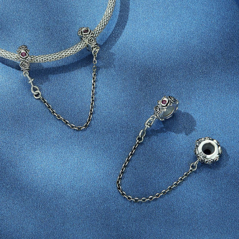 Catena Con Ciondolo Di Sicurezza Alla Moda Rosa Argento