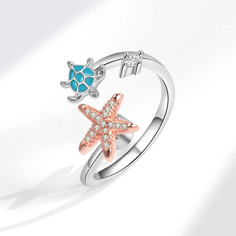 Fidget Anillo Antiansiedad Tortuga Marina Y Estrella De Mar Anillo Giratorio Ajustable Abierto Regalos De Joyería Para Ella