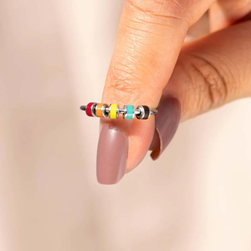 Fidget Ring Spinner Anti-ansiedad Anillo De Plata Macaron Esmalte Joyería Regalos Para Ella