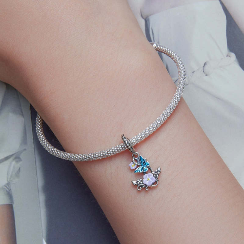 Ciondolo Pendente Con Ancora Fiore In Argento