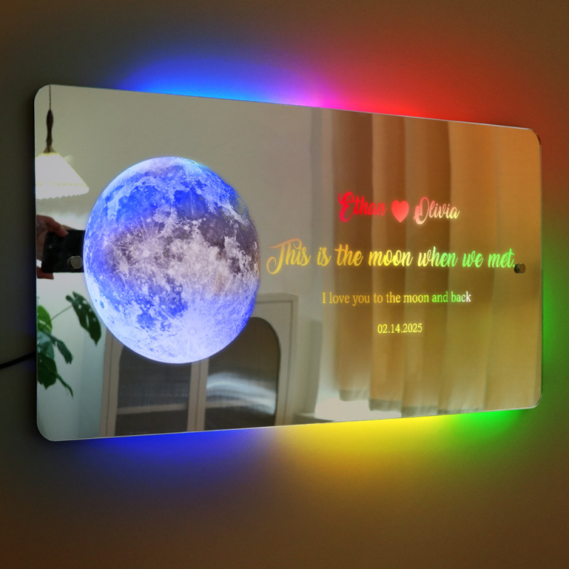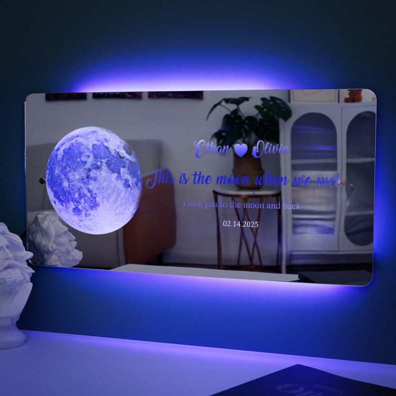 Para Amante, Pareja Personalizada, Aniversario, Luz De Espejo De Fase Lunar, Regalo Romántico Del Día De San Valentín