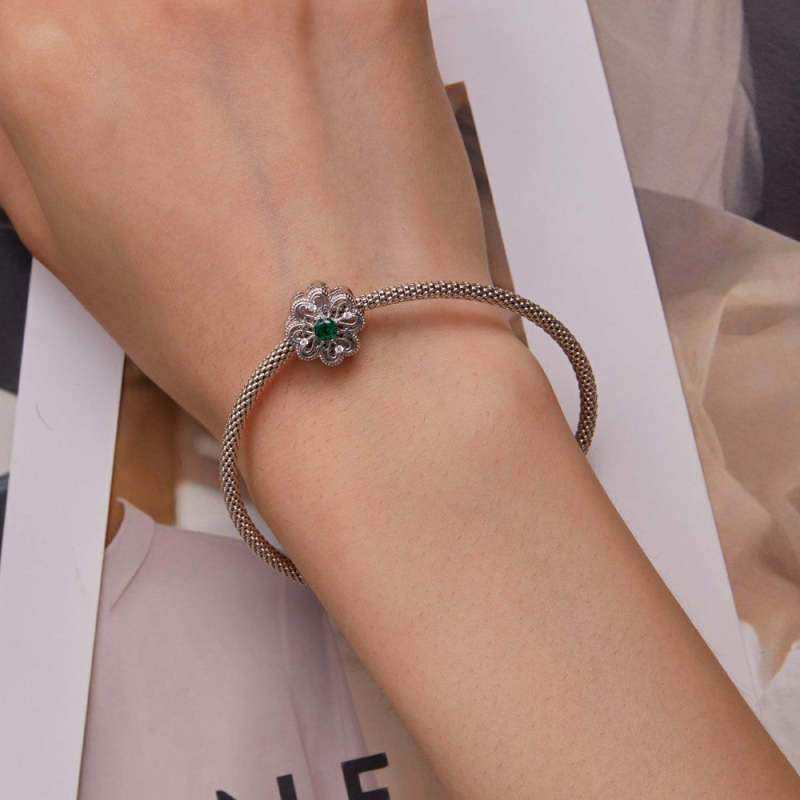 Ciondolo Zircone Verde Quadrifoglio In Argento