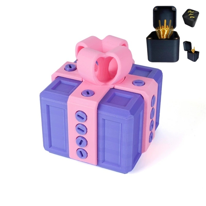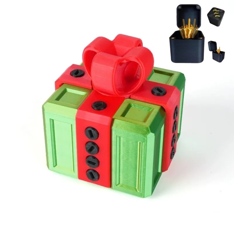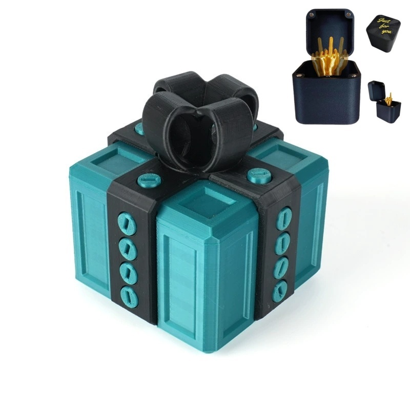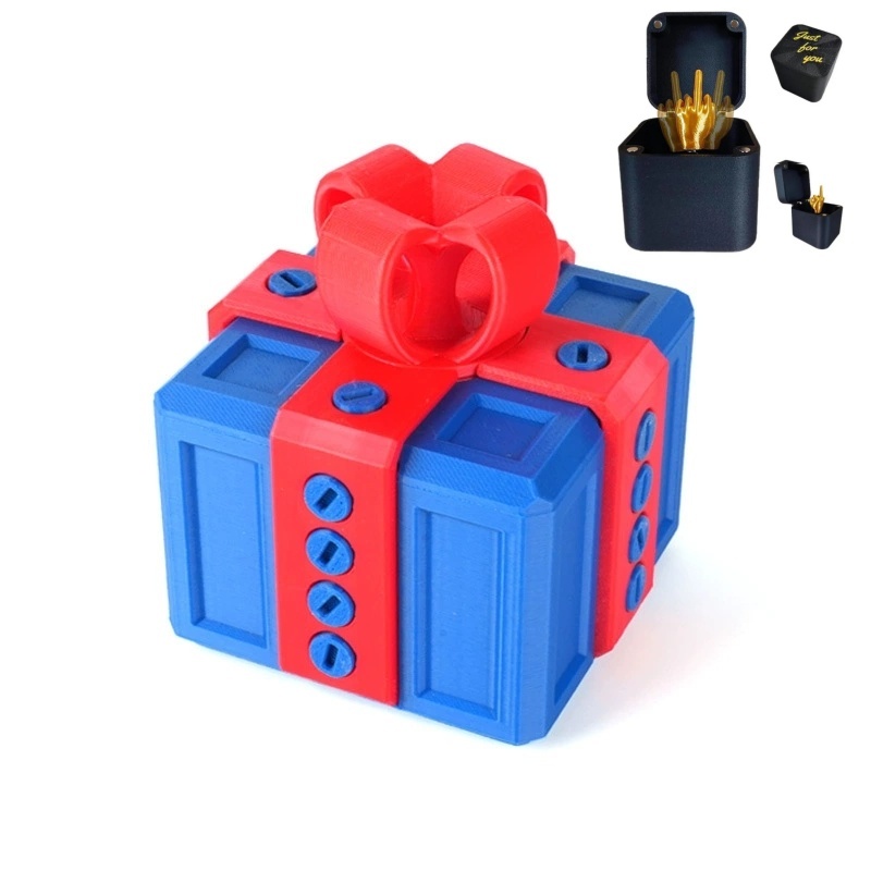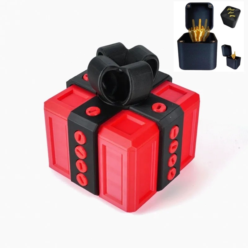 Esta caja de regalo no tiene nada de complicada, simplemente es... molesta. ¡Solo hay que quitar 20 tornillos para poder abrir la tapa, y eso es todo! Hay un destornillador plano oculto debajo de la cinta, o se puede usar un destornillador plano normal.