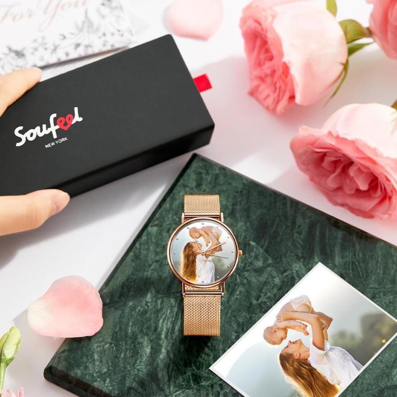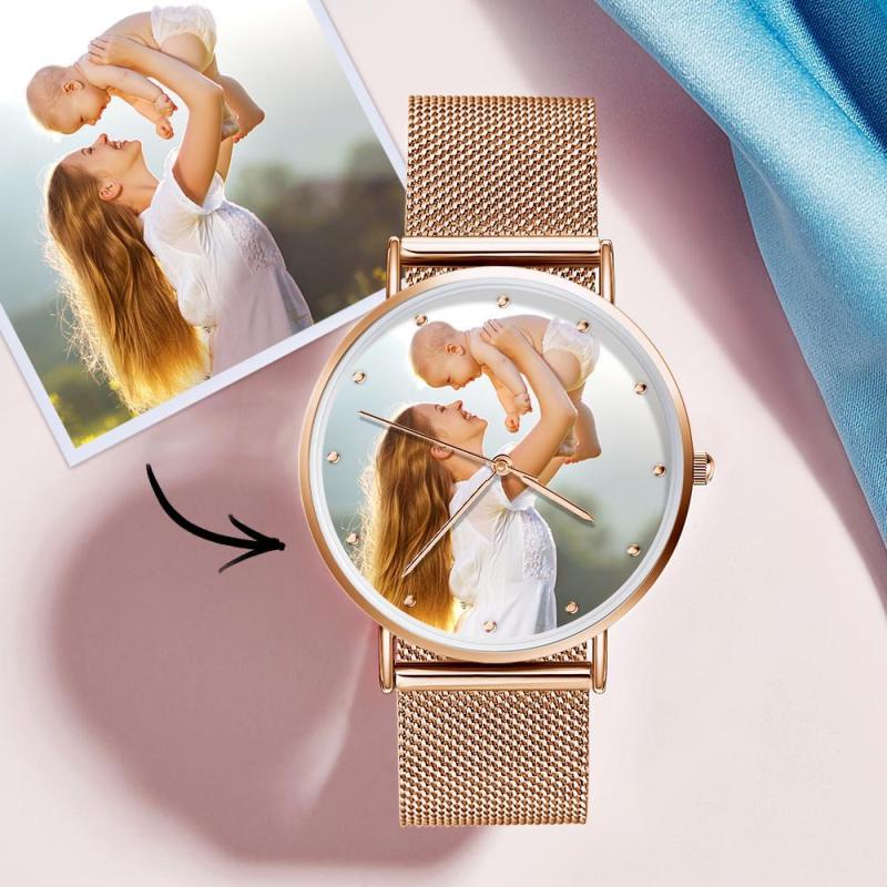 Regalos del Día de Madre - Foto Reloj de Correa Oro Rosa de Aleación con Grabado 36mm para Mujeres