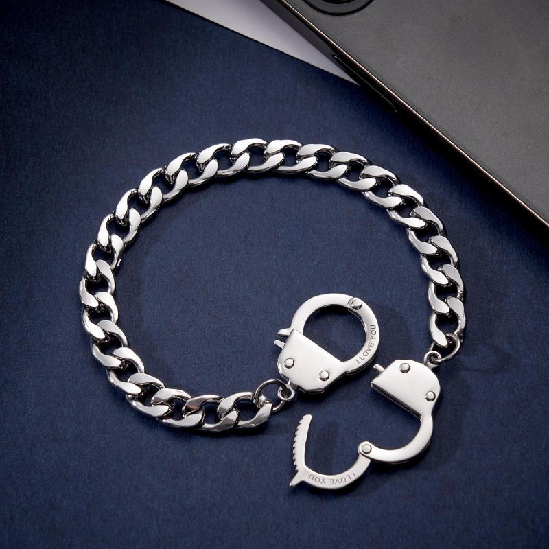 Pulsera Grabada Con Esposas, Pulsera De Cadena Con Grillete Única Personalizada Para Parejas