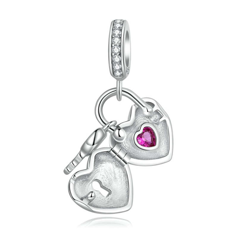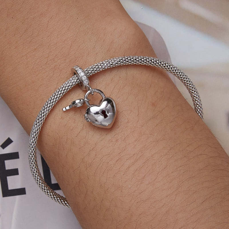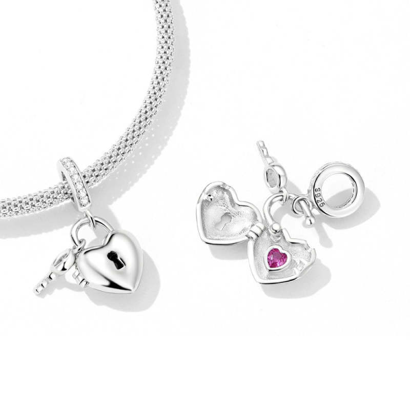 Charm colgante con candado y llave en forma de corazón en plata