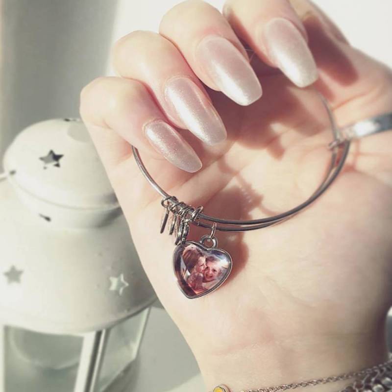 Corazón Grabable Foto Abalorio Brazalete
