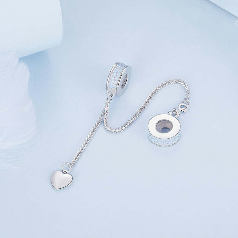 Catena Con Ciondolo Di Sicurezza Con Nappa A Cuore In Argento