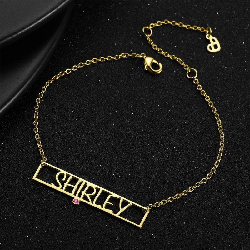 Agregue algo extra especial a su joyero con las pulseras grabables de Soufeel. Esta espectacular pulsera puede ser un regalo perfecto para ti y tus seres queridos. Una hermosa pieza, perfecta para regalar a alguien especial o como regalo para ti. Esta pulsera única está hecha a mano. Ponga un mensaje personalizado que sea único para usted, o tal vez una fecha significativa o coordenadas significativas. Soufeel ofrece joyas grabables a precios asequibles que no van a romper el banco. Además, estas piezas son un regalo muy atento y apreciado para amigos y familiares. Déselos a alguien que celebra un cumplea?os, graduación, ducha del bebé o aniversario. Hueca Barra Tallada Pulsera con Nombre con Piedra de Nacimiento Personalizada Chapada en Oro 14K - Oro.