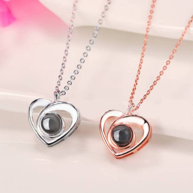 Te Amo Collar en 100 Idiomas Collar de Proyección con Foto Grabada, Elegante Corazón Collar Plata